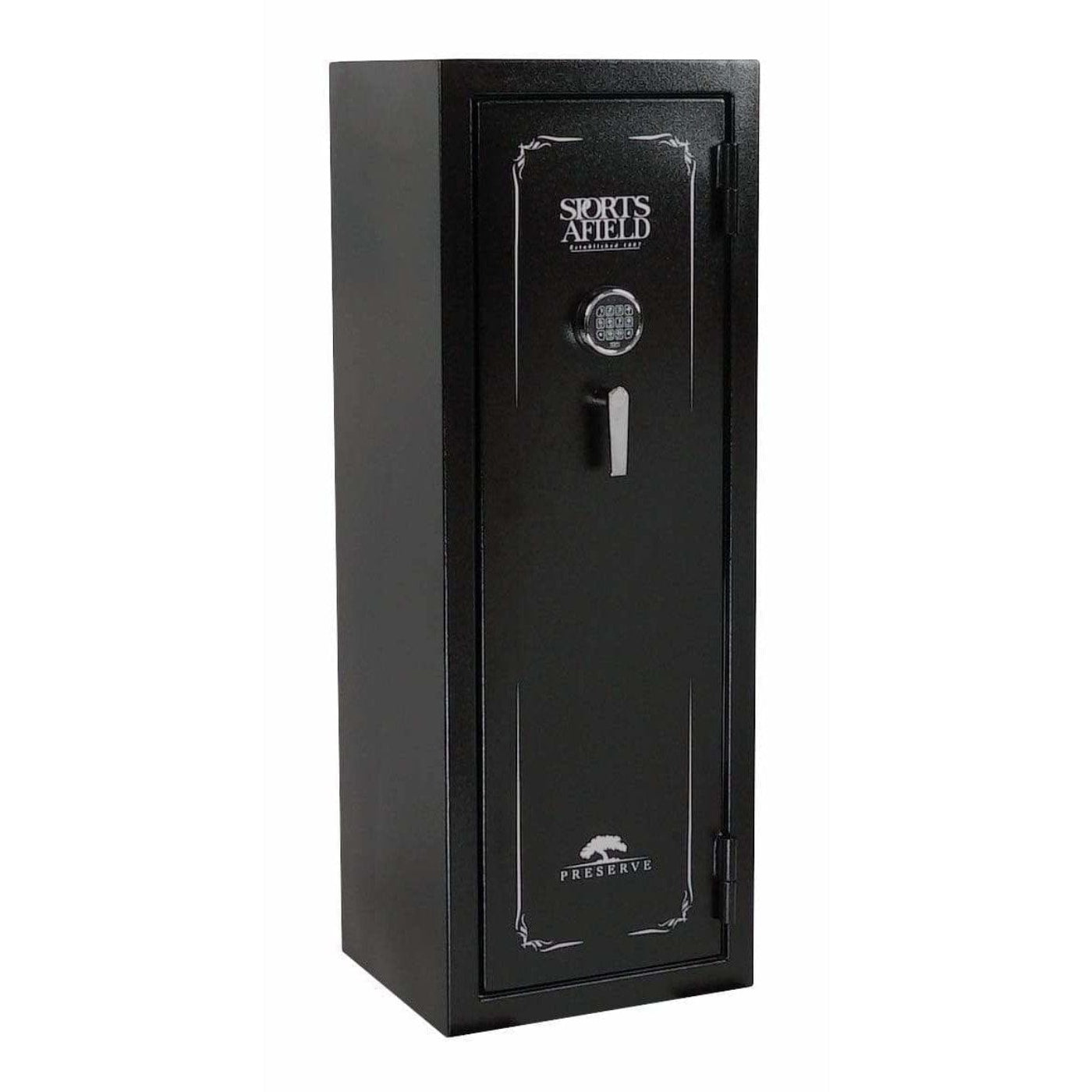 The Sports Afield Preserve Series 18 + 4-Gun with Electronic Lock Gun Safe SA5520P has a triple seal technology by combining a Palusol fire seal along with a solid Polymer seal. It features a uni-weld technology that creates a fortified seam to eliminate the risk of any weak spots in construction. Sports Afield Preserve Series Gun Safes features an anti-theft alarm system that sounds at any attempt of unauthorized entry. This safe comes with 2 backup keys to make sure you are never locked out of your safe.